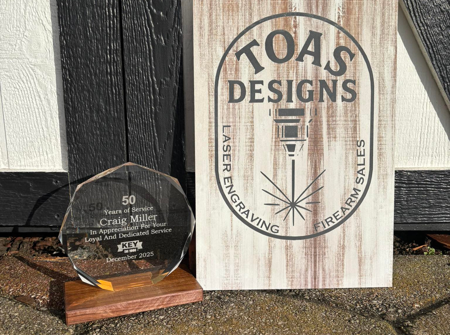 Ask us about our large selection of custom award options, from traditional plaques and engraved trophies to unique, one-of-a-kind recognition pieces that stand out from the rest. Whether you're honoring achievement, celebrating milestones, or hosting a special event, we offer laser engraved awards designed to feel meaningful and memorable.